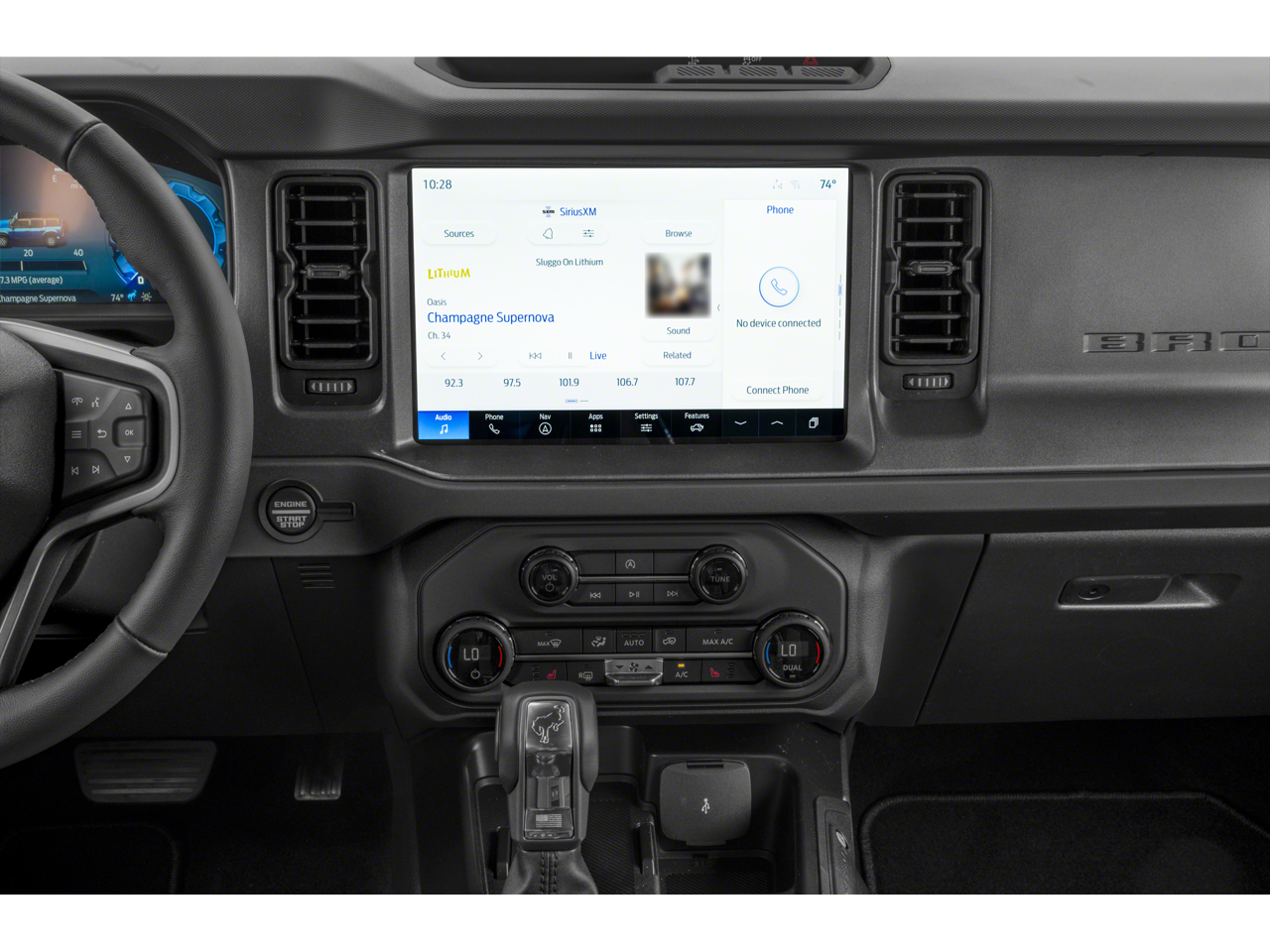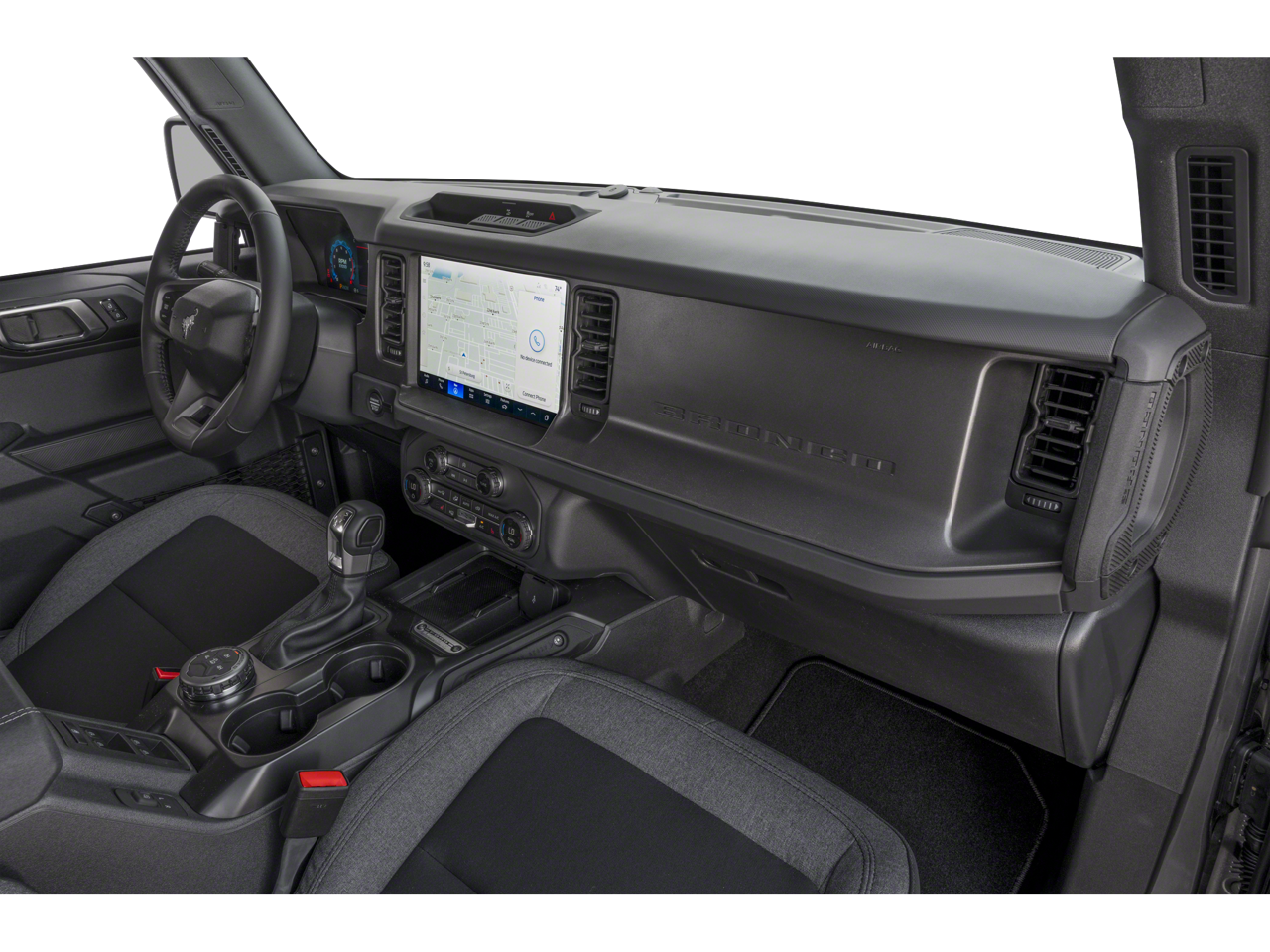 Step inside and discover a wealth of premium features that elevate your driving experience. The EQUIPMENT GROUP 222A MID PACKAGE includes a host of advanced technologies, such as Ford Co-Pilot360, Blind Spot Information System, and Connected Navigation. Dual-zone climate control, heated front seats, and ambient footwell lighting add to the Bronco's exceptional comfort and convenience.